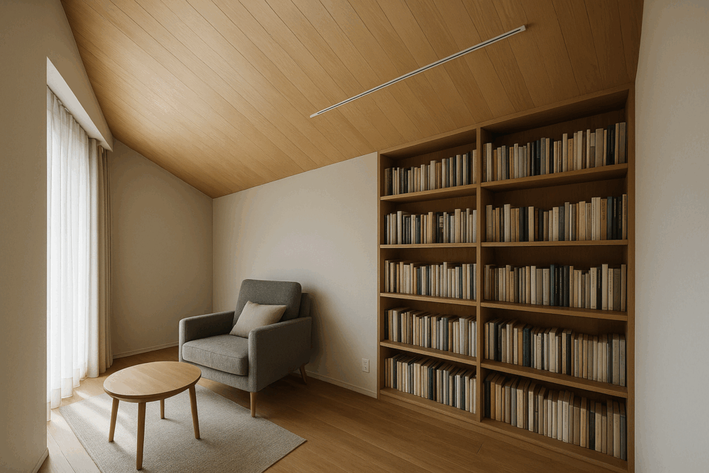読書や趣味の時間を大切にしたい人には、勾配天井の低い側を活かした計画が合います。
