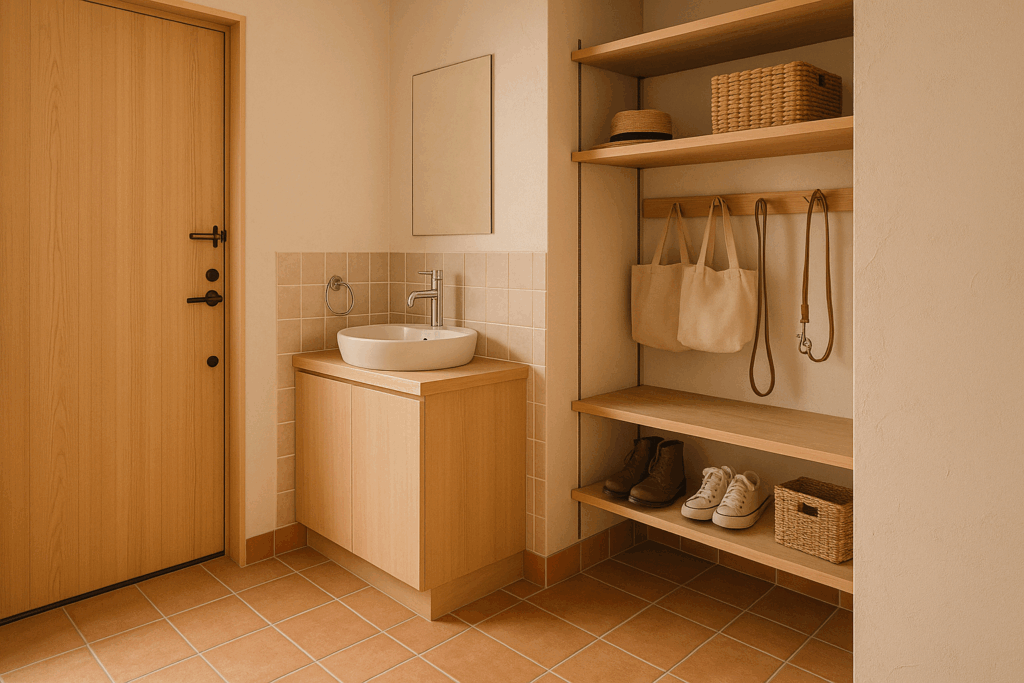 散歩後のケアをしやすくするためには、玄関まわりの動線整理や素材の選び方が役立ちます。準備や片付けが負担になりにくい環境づくりが求められます。